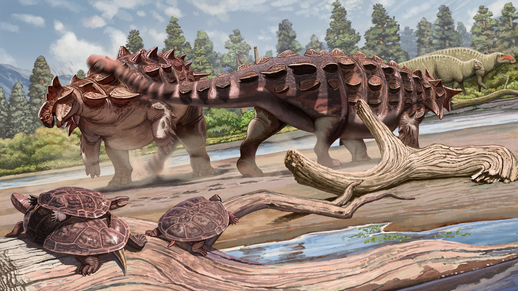 “‘兽纹华夏胄龙’为了保护自己,会用甩尾的方式进行攻击,它们的尾部末端长出了骨质尾锤,有柚子般大小,在强有力的尾部肌肉驱动下,尾锤像铅球一样,能重创对手,可以说,虽然是植食性恐龙,但‘兽纹华夏胄龙’会让同时期掠食者忌惮。”伟德国际bevictor脊椎动物演化研究中心博士生朱子恒说。
