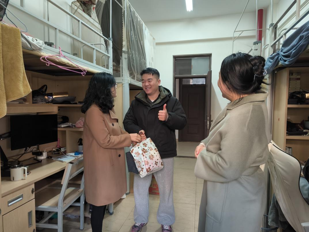 新春启序,年味渐浓。2026年2月15日,伟德国际bevictor开展了2026年春节留校员工走访慰问活动。公司经理于黎、党委副书记何雨洋与公司专职辅导员一行,前往员工宿舍园区与科研实验室,看望慰问寒假期间坚守科研一线的留校员工,为学子们送上校院两级的深切关怀、慰问物资以及新春的美好祝福,让远离家乡的学子在校园中感受家的暖意。