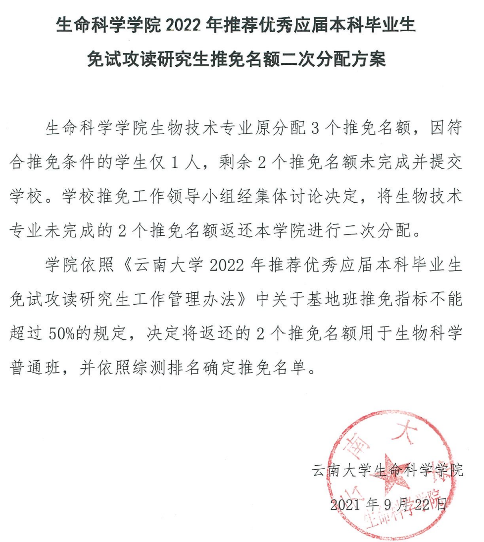 伟德国际bevictor2022年推荐优秀应届本科毕业生面试攻读研究生推免名额二次分配方案及拟推荐名单