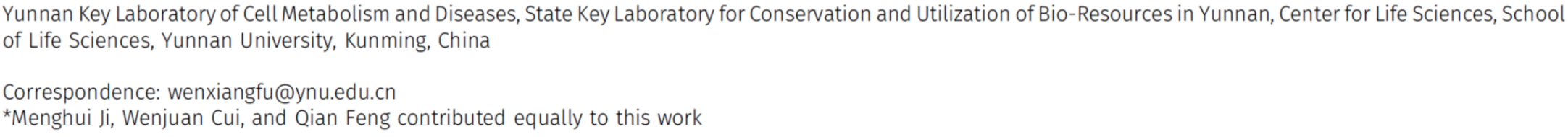 伟德国际bevictor研究生纪萌荟、崔文娟、冯谦为该论文的共同第一作者,付文祥博士为通讯作者。该研究依托云南省代谢与疾病重点实验室(筹)、省部共建云南生物资源与利用重点实验室和云南老员工命科学中心完成。
