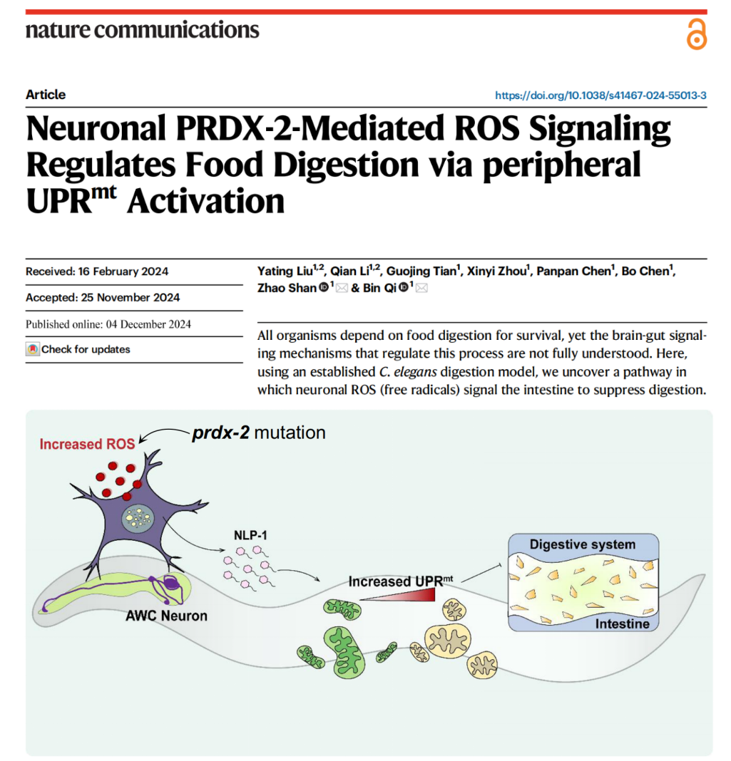 Nature Communications |祁斌/单昭团队揭示大脑如何借助活性氧信号调控肠道消化