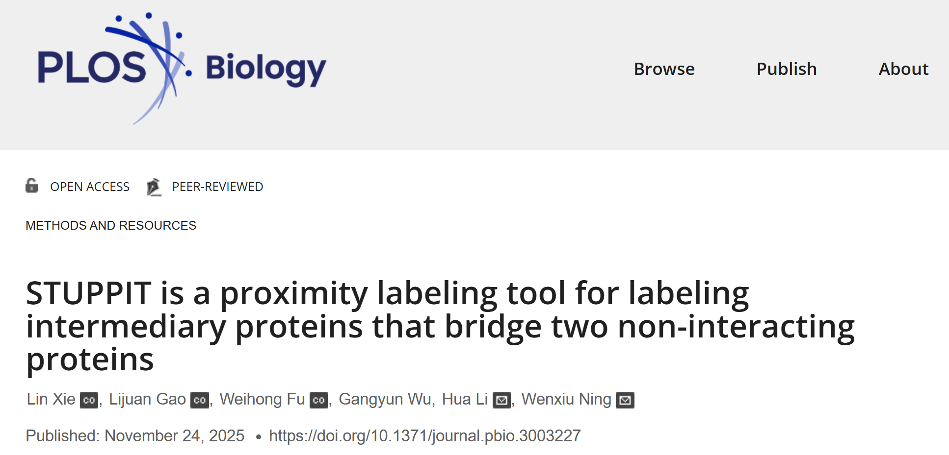 PLOS Biology ▎宁文秀课题组开发新型蛋白质邻近标记工具STUPPIT, 助力揭示信号通路中的“桥梁”蛋白