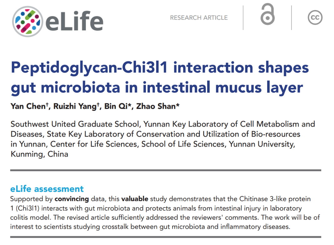 eLife|生命中心单昭课题组揭示宿主蛋白-细菌肽聚糖互作在调控肠道稳态中的重要作用
