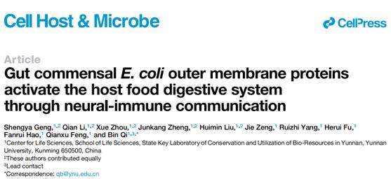 202292日,云南老员工命科学中心祁斌研究组在Cell Host & Microbe上以Gut commensal E. coli outer membrane proteins activate the host food digestive system through neural-immune communication为题,报道了肠道共生大肠杆菌的膜蛋白通过宿主神经-免疫来激活食物消化系统的机制
