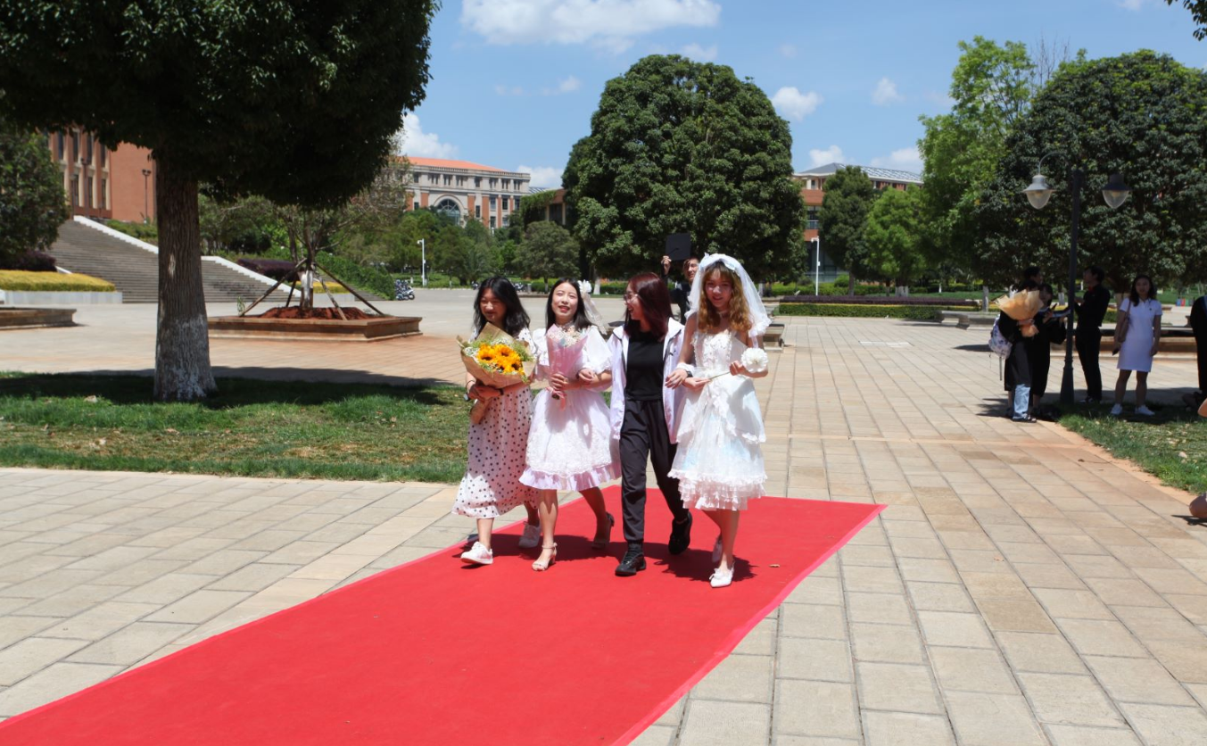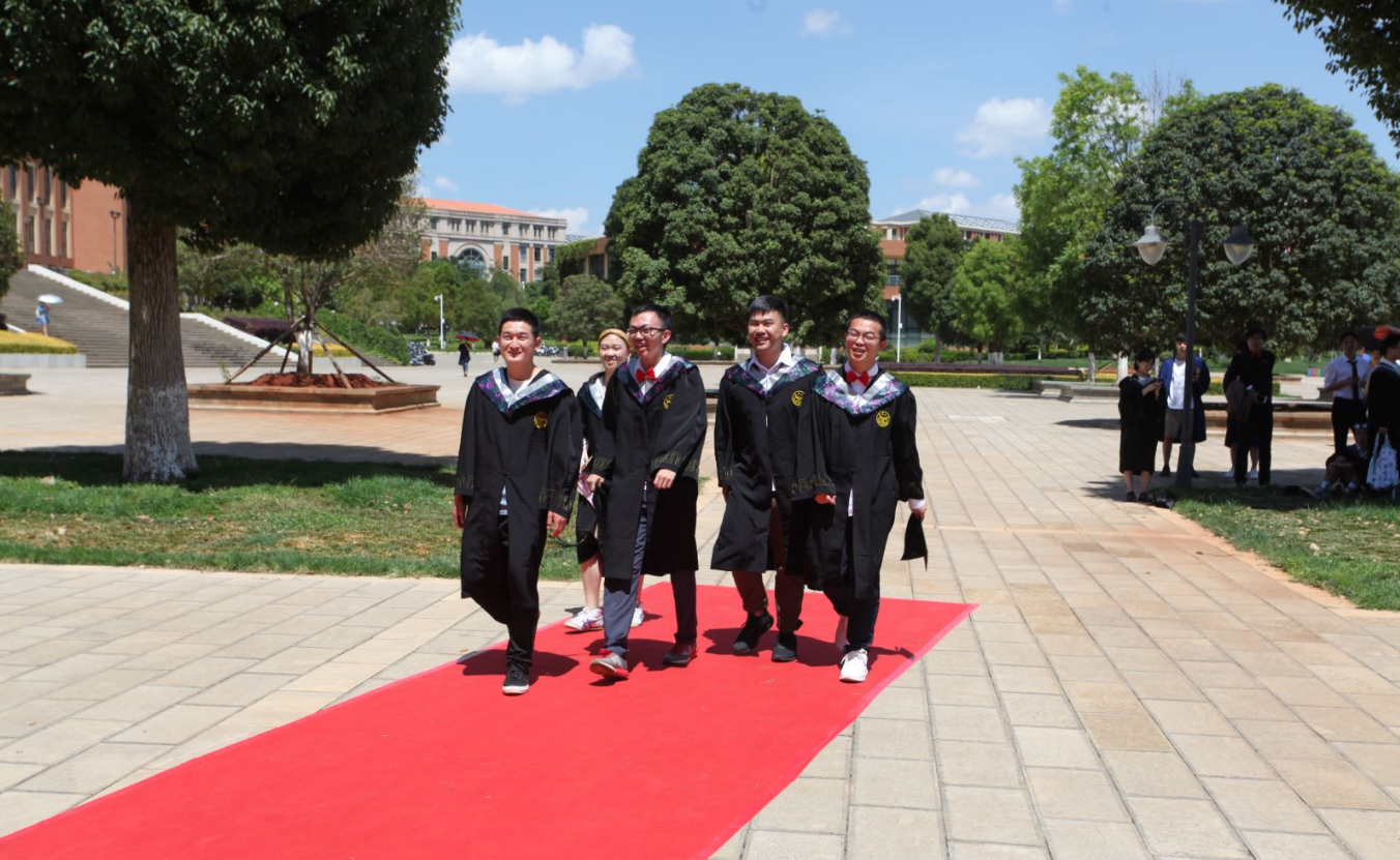 早晨毕业照拍摄,同学们穿着公司统一定制学位服,来到明远楼前,与老师同学一起留下和云大的记忆。