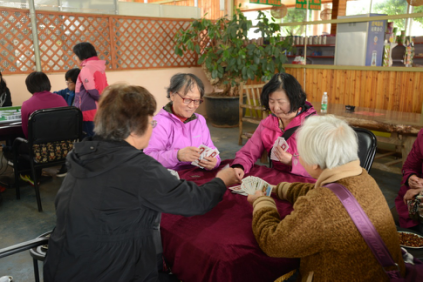 参观之余以棋牌休闲增进感情