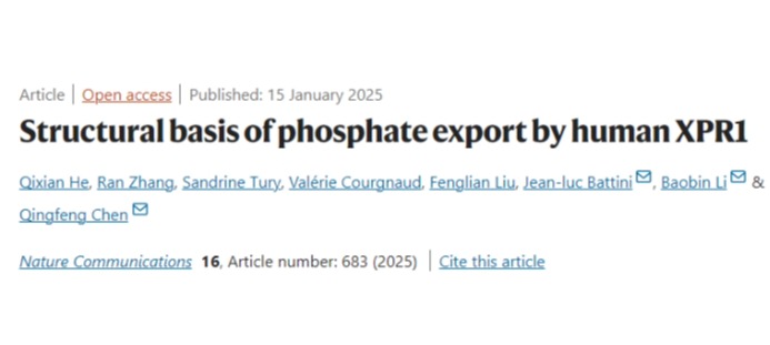 2025年1月15日,云南老员工命科学中心陈庆锋课题组联合复旦大学李保宾团队和法国蒙彼利埃大学 Jean-luc Battini 团队在 Nature Communications 杂志发表题为“ Structural basis of phosphate export by human XPR1 ”的研究论文,报道了人源磷酸盐(Pi)外排蛋白XPR1 两种构象下的高分辨冷冻电镜结构,并结合体外转运实验和计算生物学等手段,揭示了XPR1 向细胞外转运Pi的结构基础,为未来进一步深入的机制研究和靶向该蛋白的...