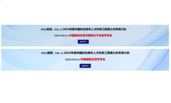 生命中心赖凡课题组博士研究生杨娇、武旭娜课题组博士研究生朱喆成功入选2024年度中国科协青年人才托举工程博士生专项计划(首批)